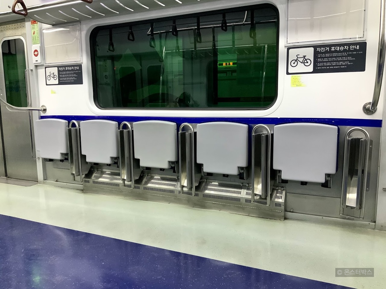 출퇴근 시간에만 가축수송인 노선에 이런거 도입하면 참 좋을것 같은 좌석이네요.
