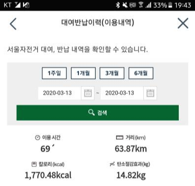 (칼로리도 보시다시피 이상하게 뜨고 심지어 시간도 0으로 떠서 남은 시간 알림 안나옴... 그래서 반납시간 1분 넘겨버림)