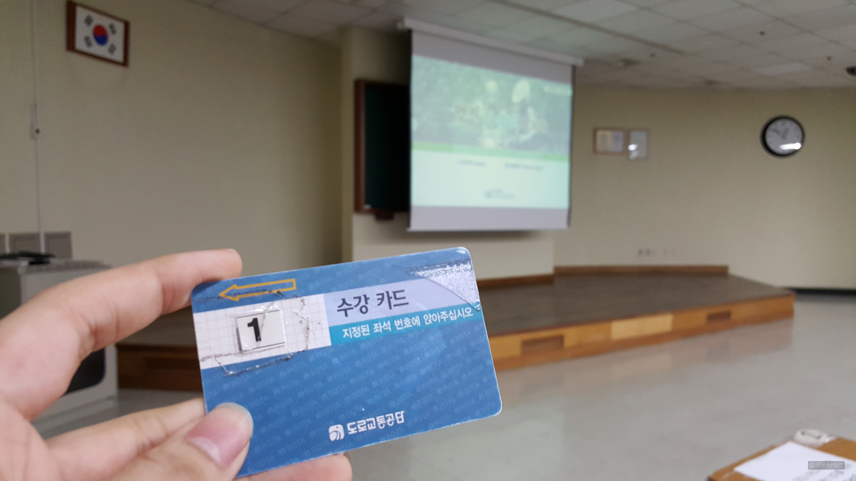 이때 받는 수강카드는 그냥 수강을 듣는 사람이 가지고 있는 카드 그 이상 이하도 아닙니다. 뒤에 마그네틱 띠가 있긴 한데 긁을 일도 없고요.