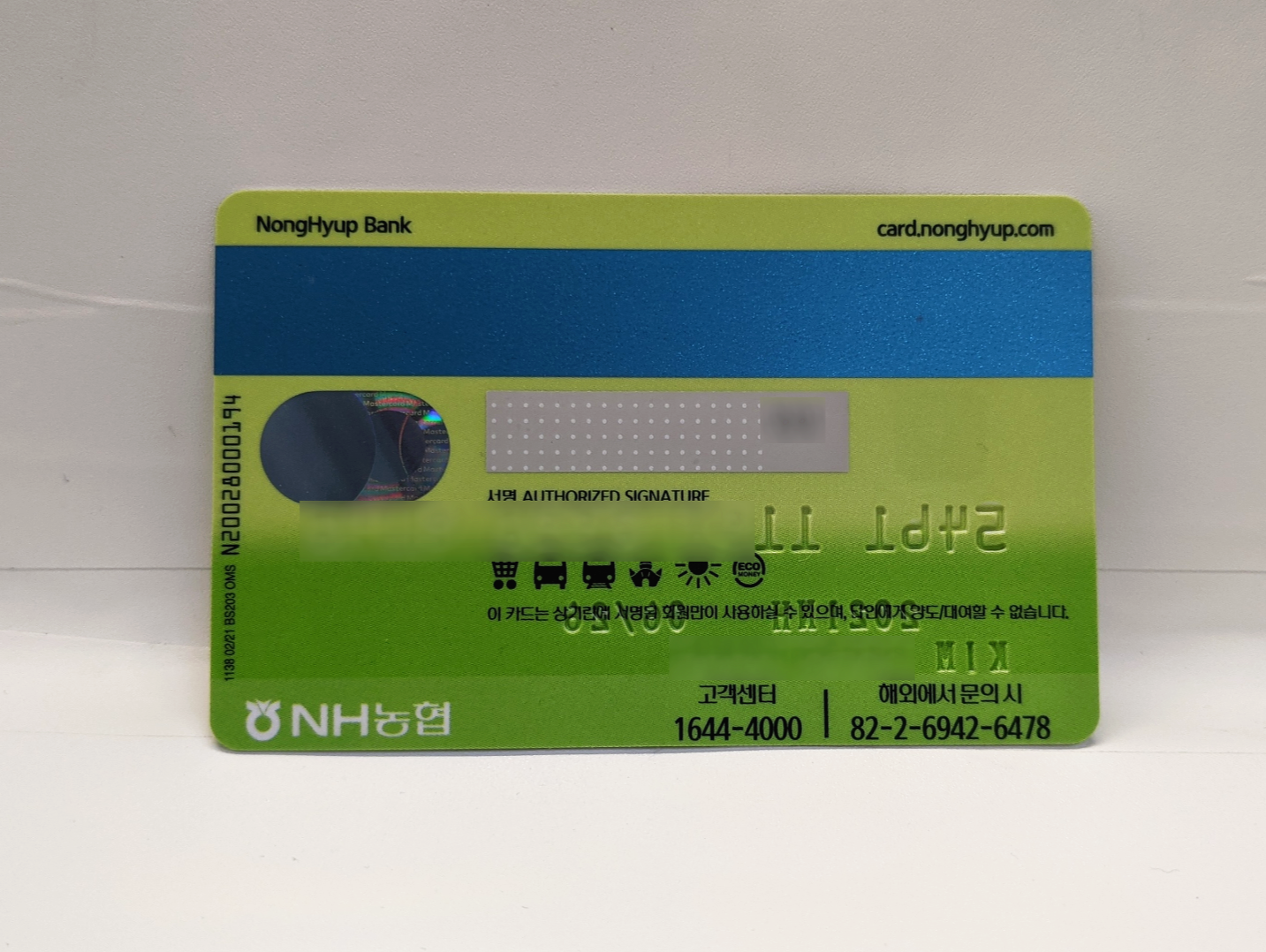 일반적인 그린카드는 좌측 디자인인데, 농협 혼자 저런 디자인을 하고 있네요.