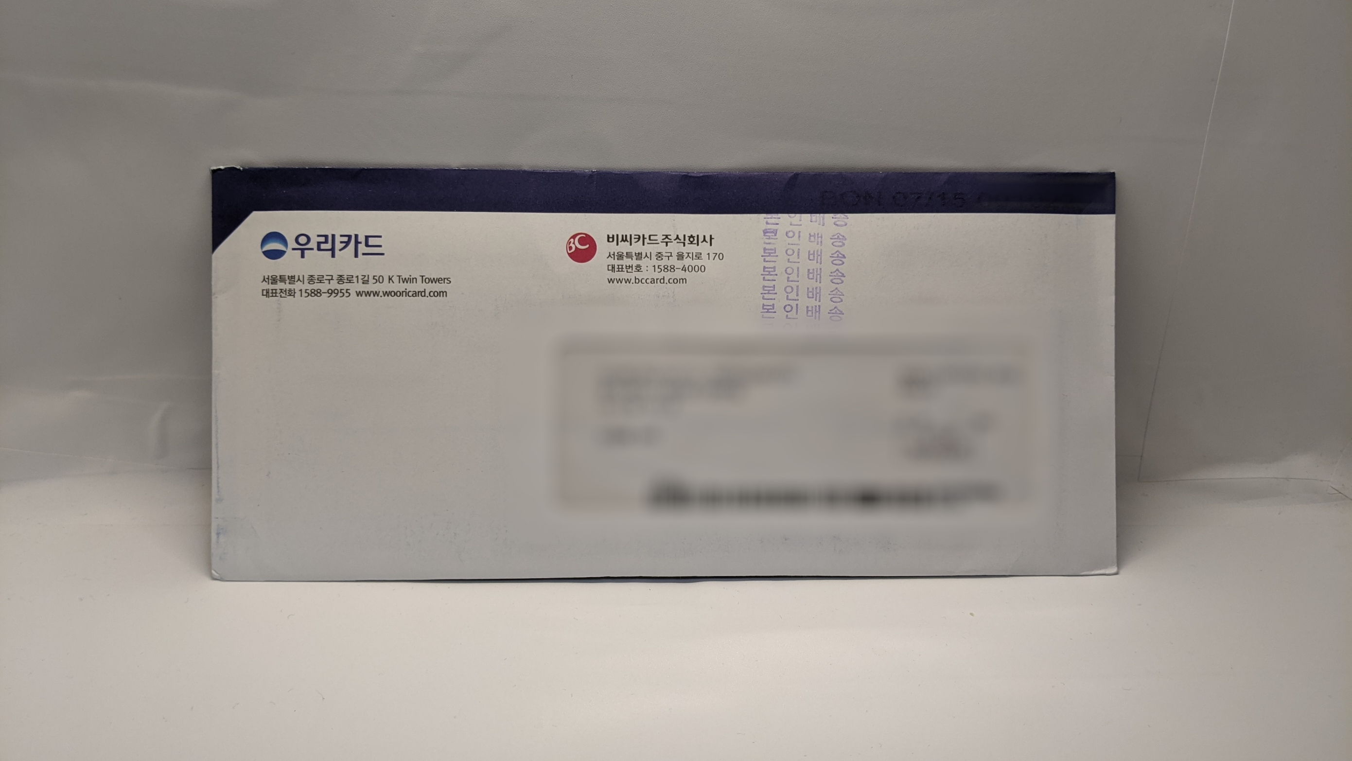 왜냐하면 다른 BC카드는 제니엘로 오는데, 우리카드만 성호라인으로 왔기 때문입니다(...)