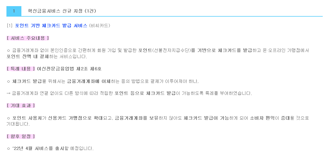 이 카드는 혁신금융서비스 지정을 받고 출시된 포인트 기반 체크카드라고 합니다... 만