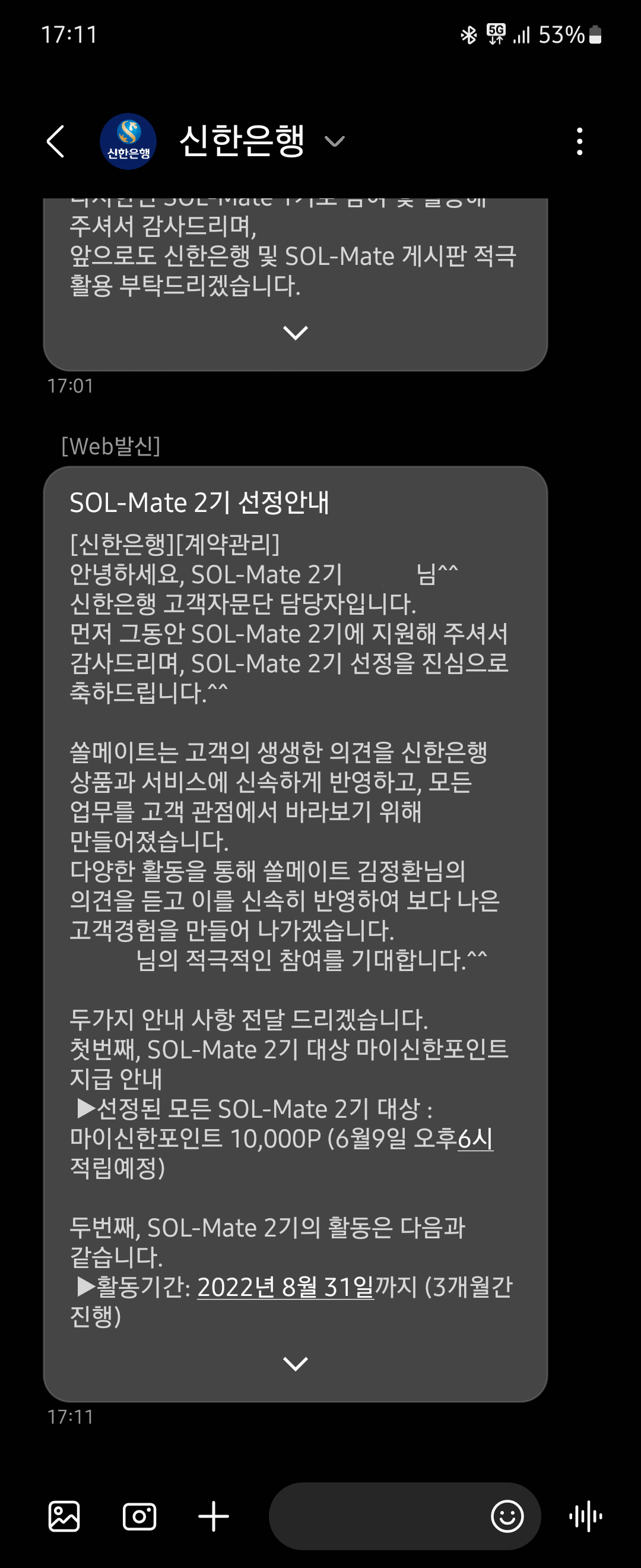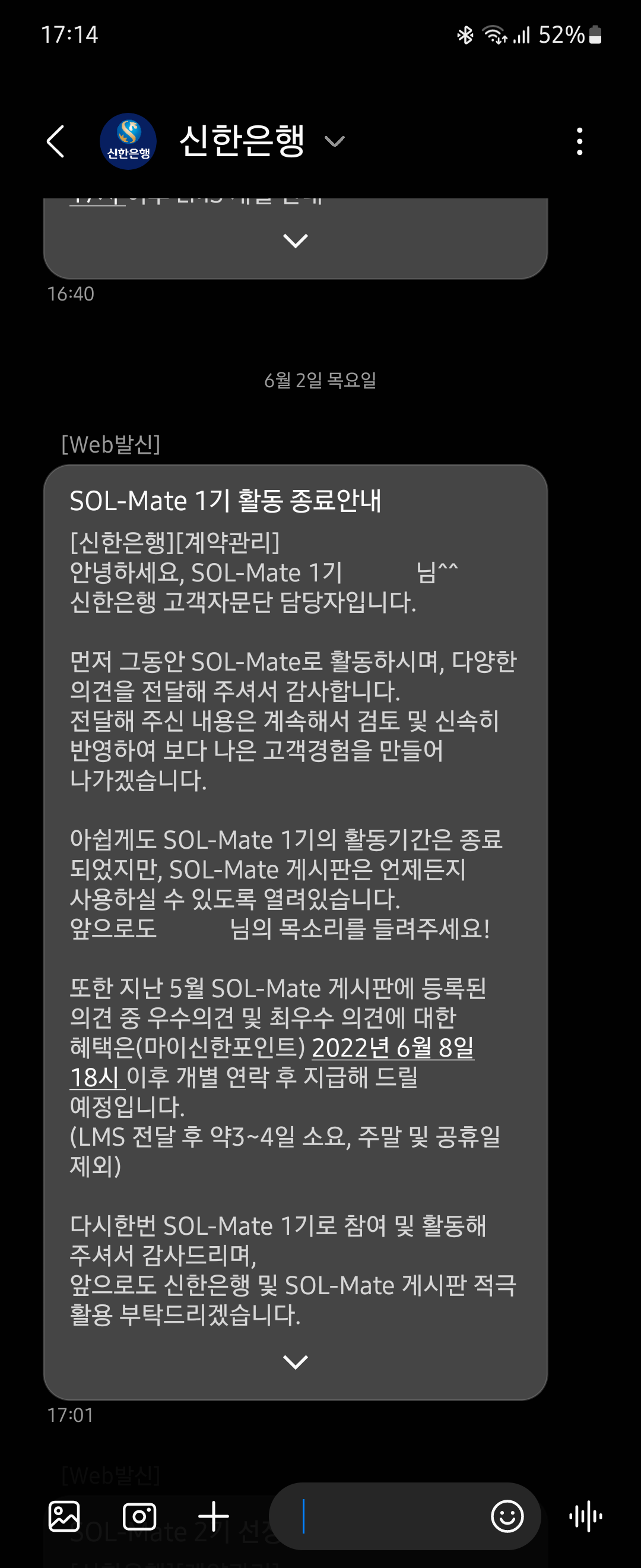 | SOL-Mate(신한은행 고객자문단)가 되었습니다 (0) | 2022.02.23 |