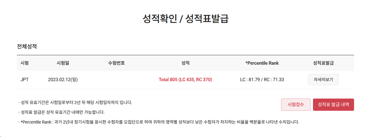 * 이 글 제목은 글쓴이 본인의 점수를 작성한 것이며 실제 JLPT-JPT 간의 상관관계를 의미하지 않습니다