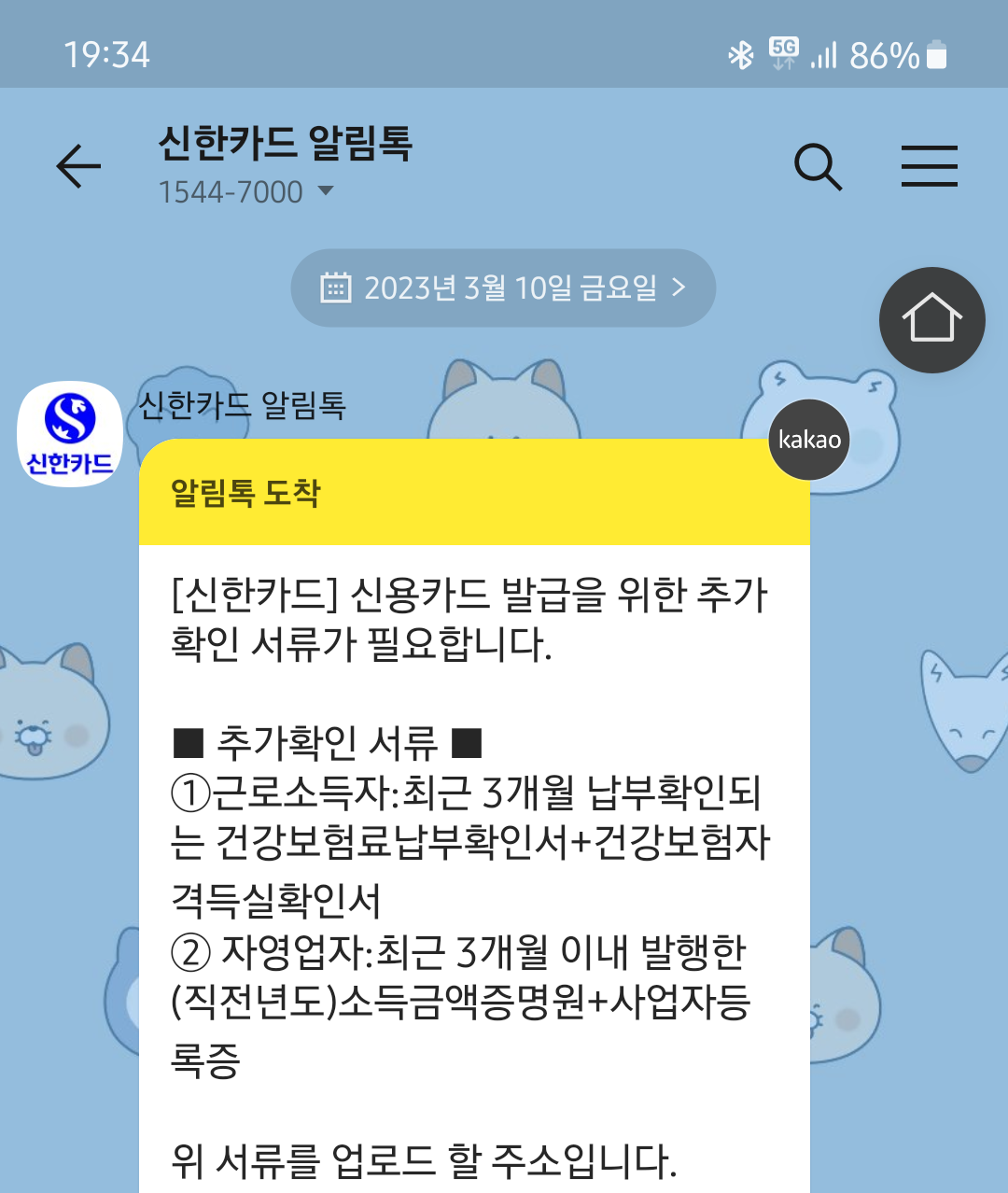 이런 알림톡이 오더군요