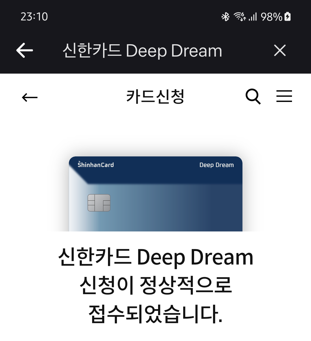 제가 신청한 카드는 글 제목에도 적혀있듯이 신한 Deep Dream이고, 카드 모습은 이렇습니다