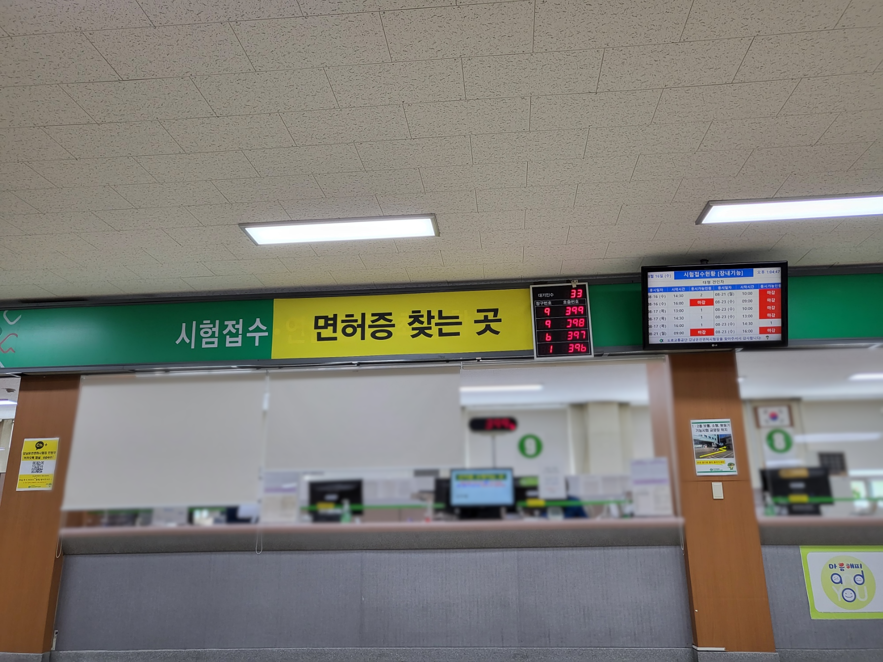 신청을 하고 수령 창구 앞에서 기다리다가, 이름이 불리면 가서 면허증을 받아오면 되는데