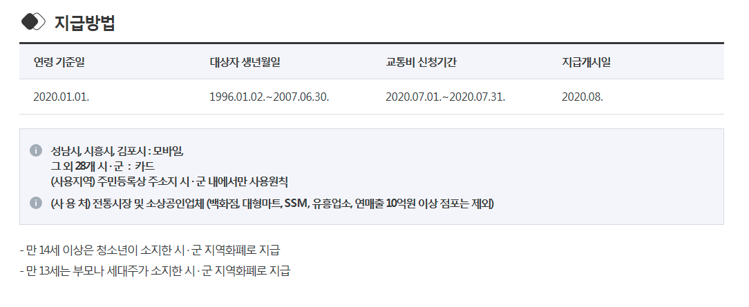 경기도에서 7월 1일부터 청소년들에게 교통비의 일부를 지역화폐로 지원한다고 합니다.