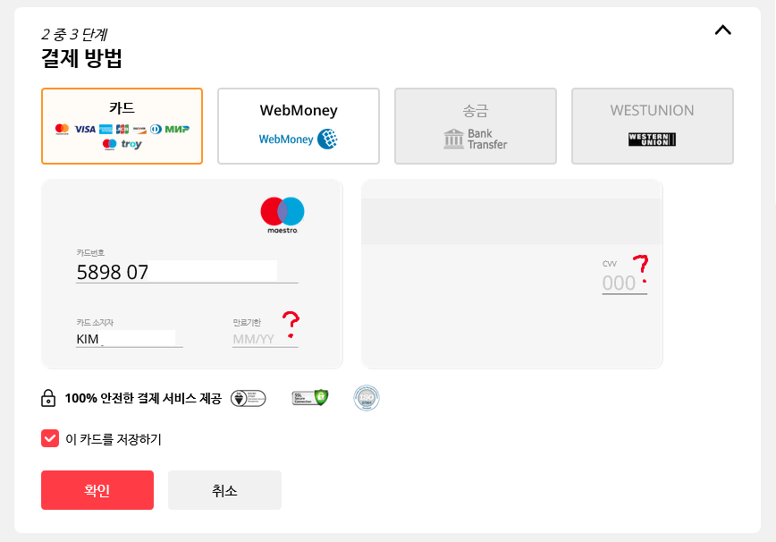 마에스트로를 받는 가맹점은 대표적으로 알리익스프레스가 있으나, 만료기한과 CVV가 없어서 결제가 안됩니다(...)