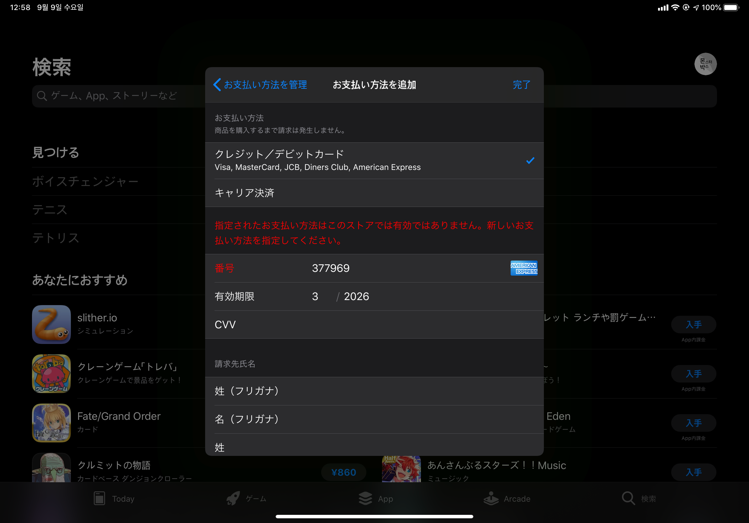 당연하지만 애플 일본 계정에는 등록이 불가능합니다. 사실 이거 뚫으려고 만든 거였는데