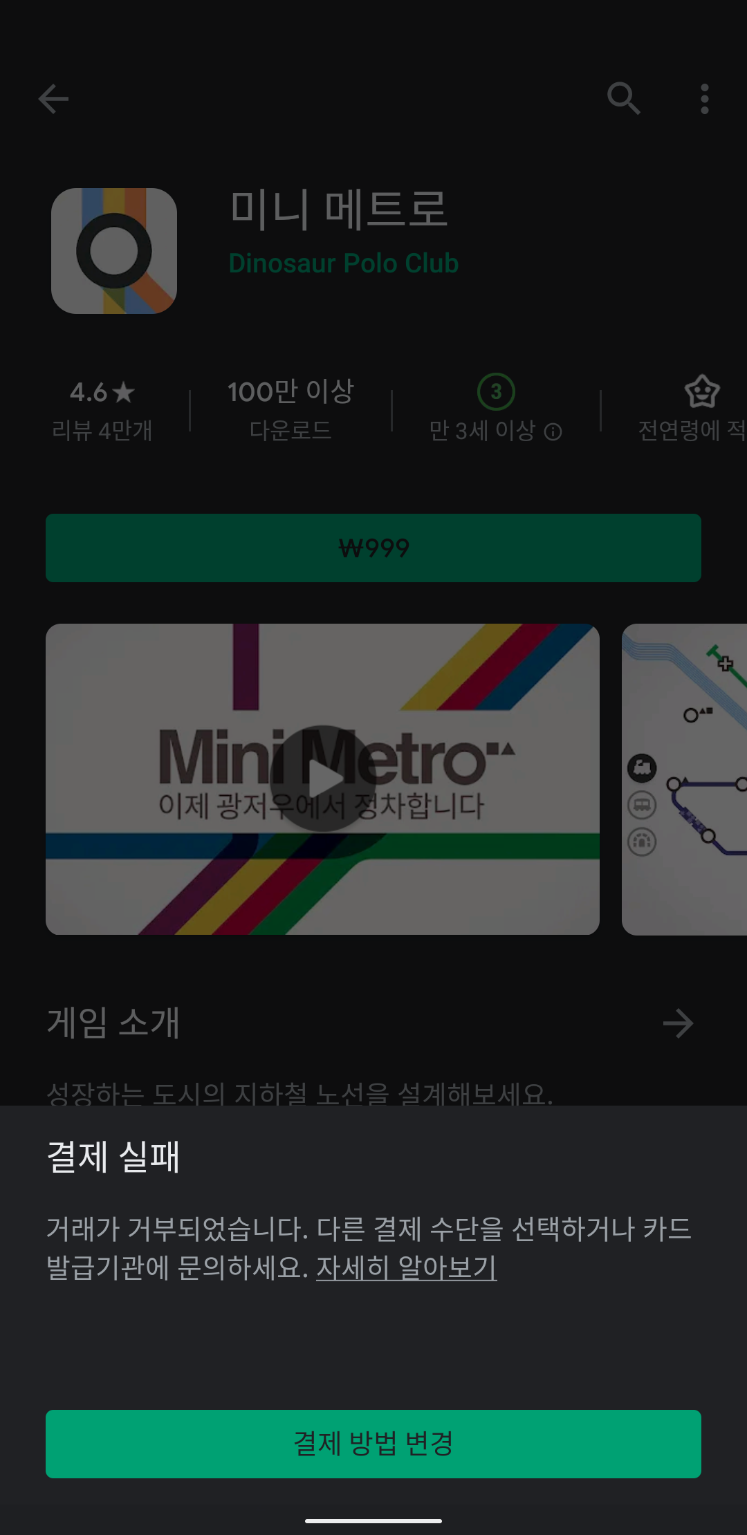 어디서 국내 앱스토어에서 결제하면 해외망으로 결제된다는 소리를 하던데, 그냥 바로 결제 실패가 뜹니다.