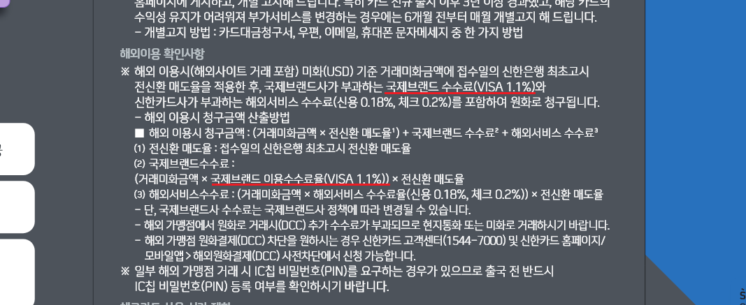이 카드는 비자카드 수수료가 1.1%입니다.