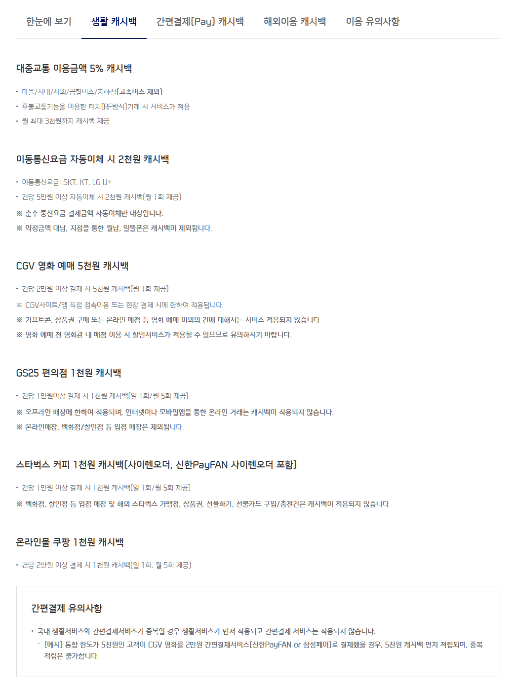 생활/간편결제 캐시백은 직접 설명하는 것보단 설명 보여드리는 게 빠를 것 같아서 이렇게 보여드립니다