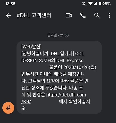 아무튼 배송은 DHL로 오게 됩니다.
