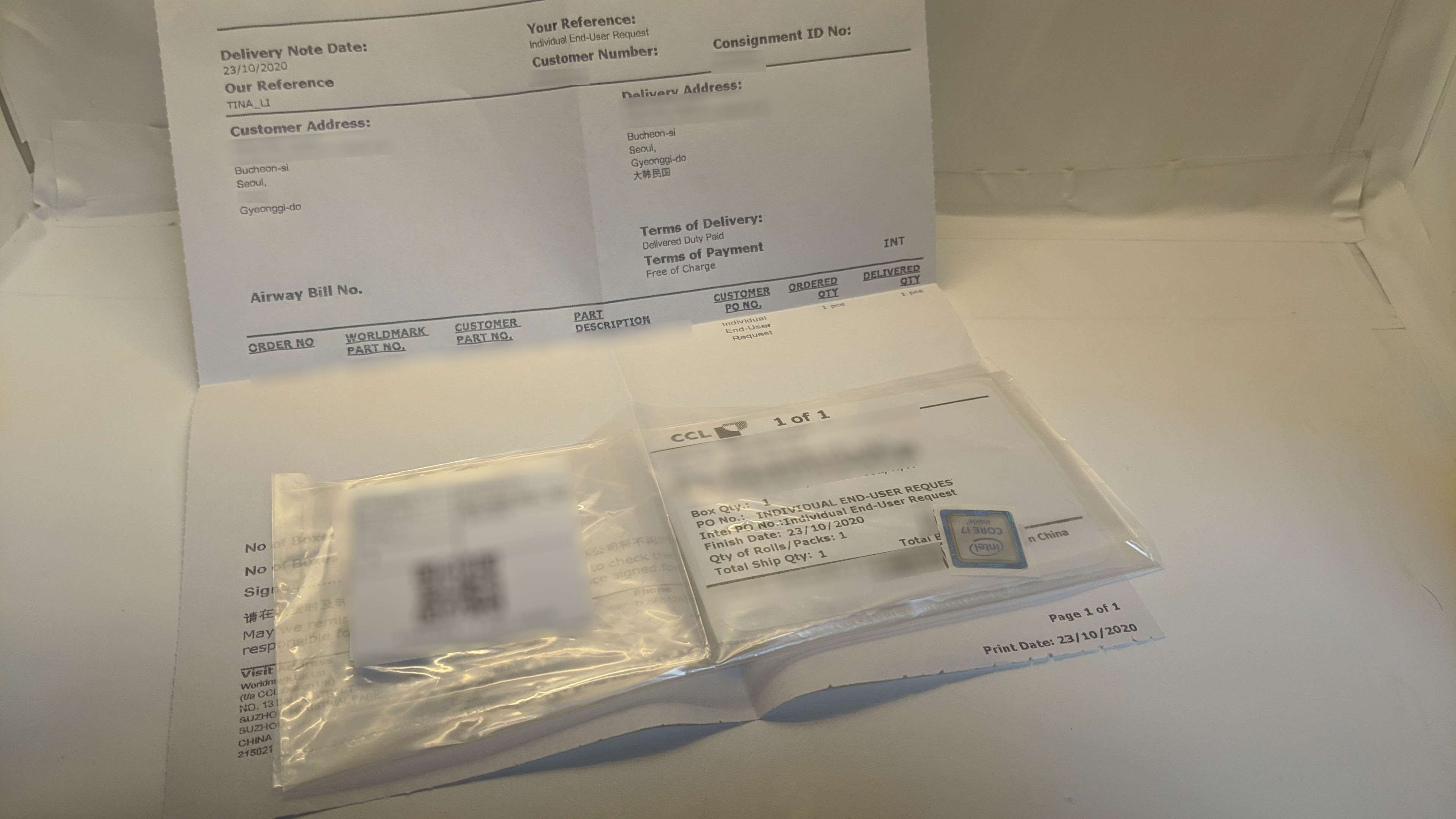 우편도 아니고 DHL로 보냈으니 배송료가 더 나올 듯... 어차피 돈은 인텔이 내는 거라 상관없나
