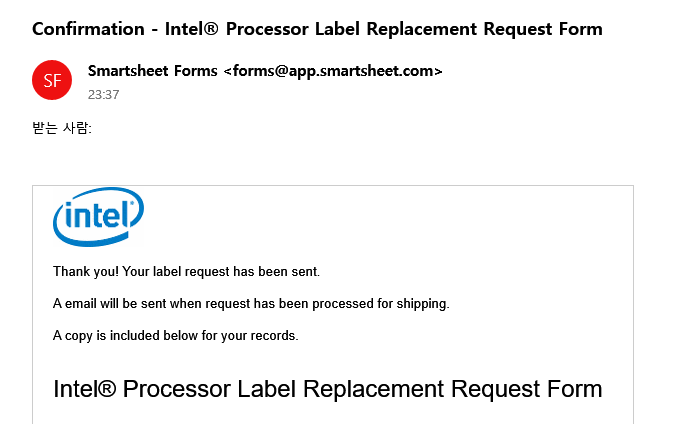 며칠 전, 아는 분이 이걸로 인텔 CPU 스티커를 신청해서 받았다고 하시더군요.