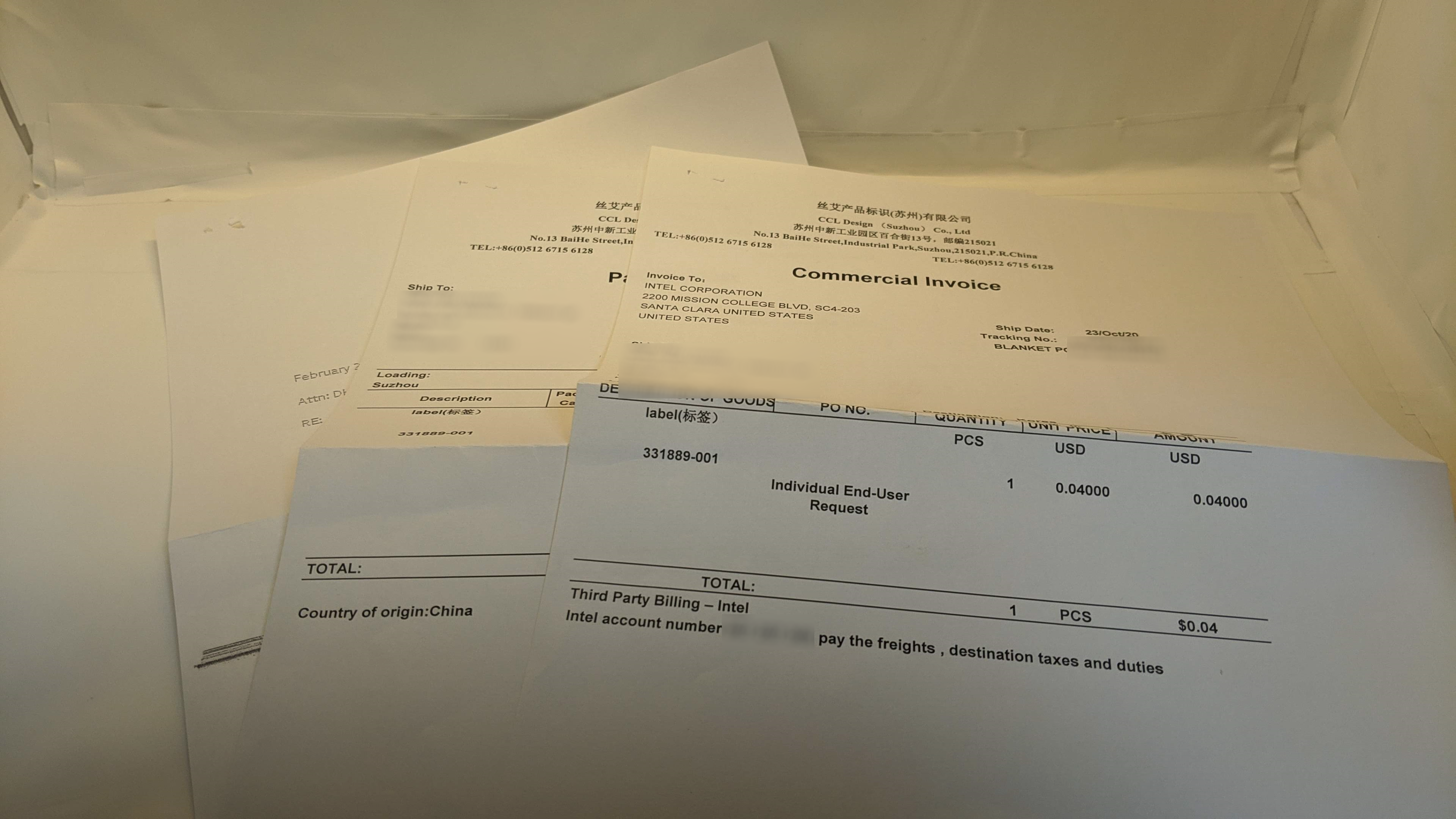 뒷면에는 송장과 여러 서류들이 붙어있습니다.
