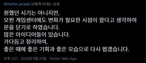 9월 24일, 모펀을 10월 30일까지만 운영한다는 트윗이 올라왔습니다.