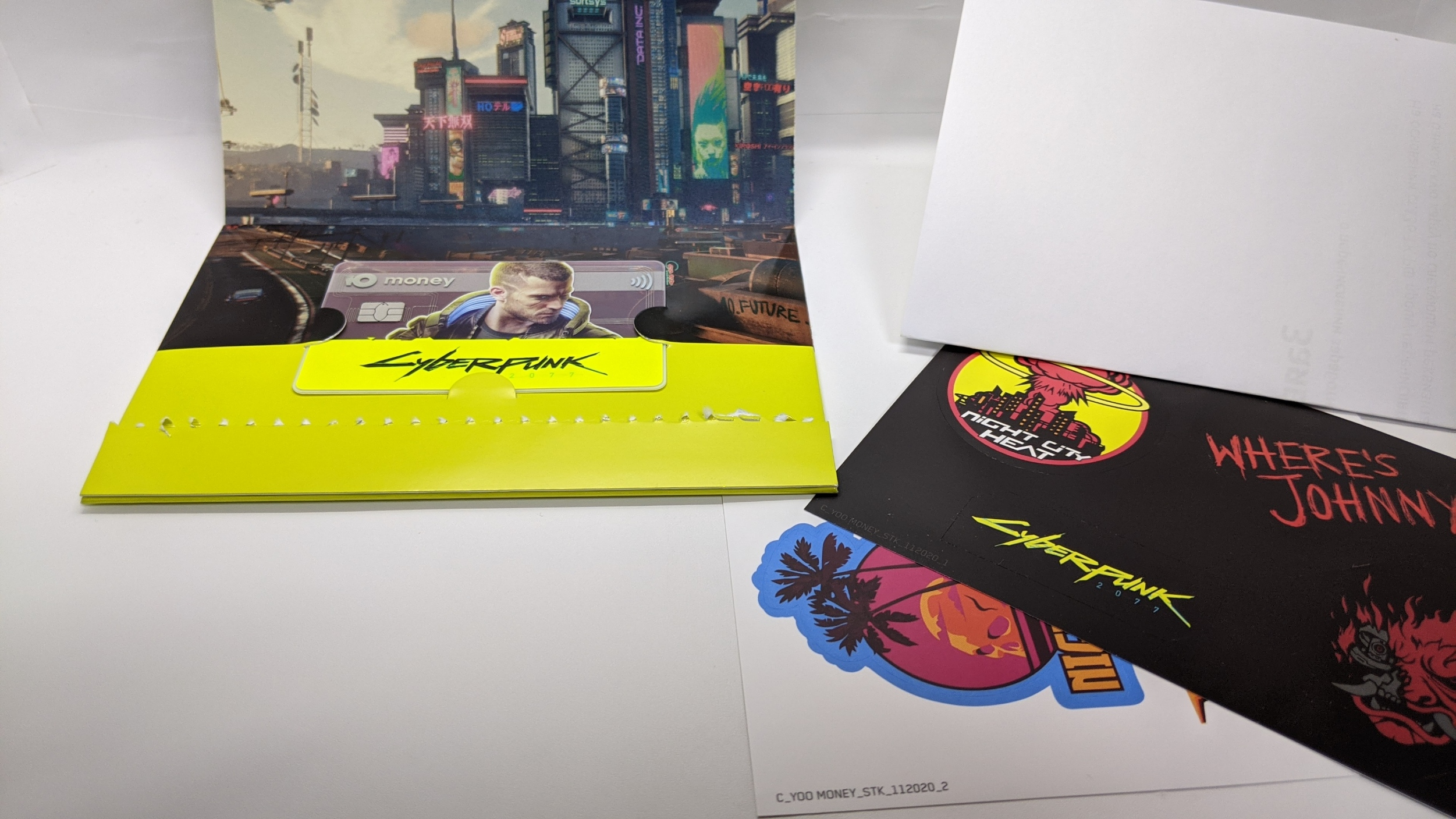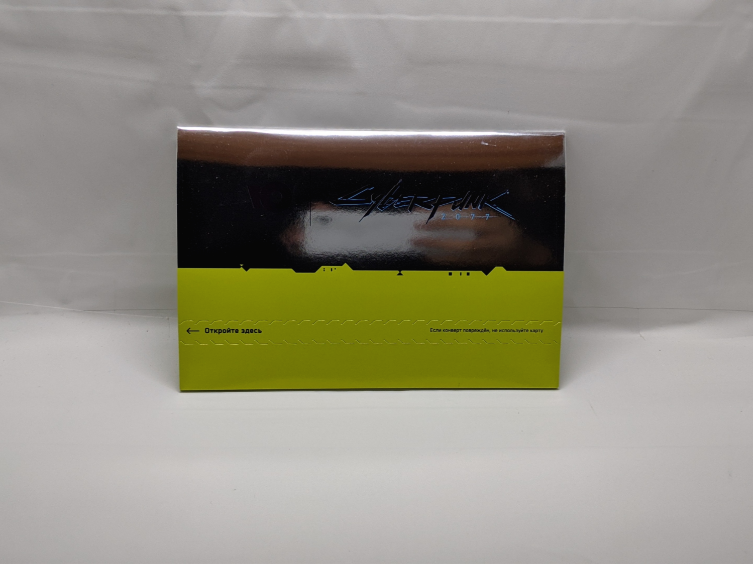 앞쪽엔 사이버펑크 로고와 캐릭터가 있고, 정보는 뒷면에 있습니다.