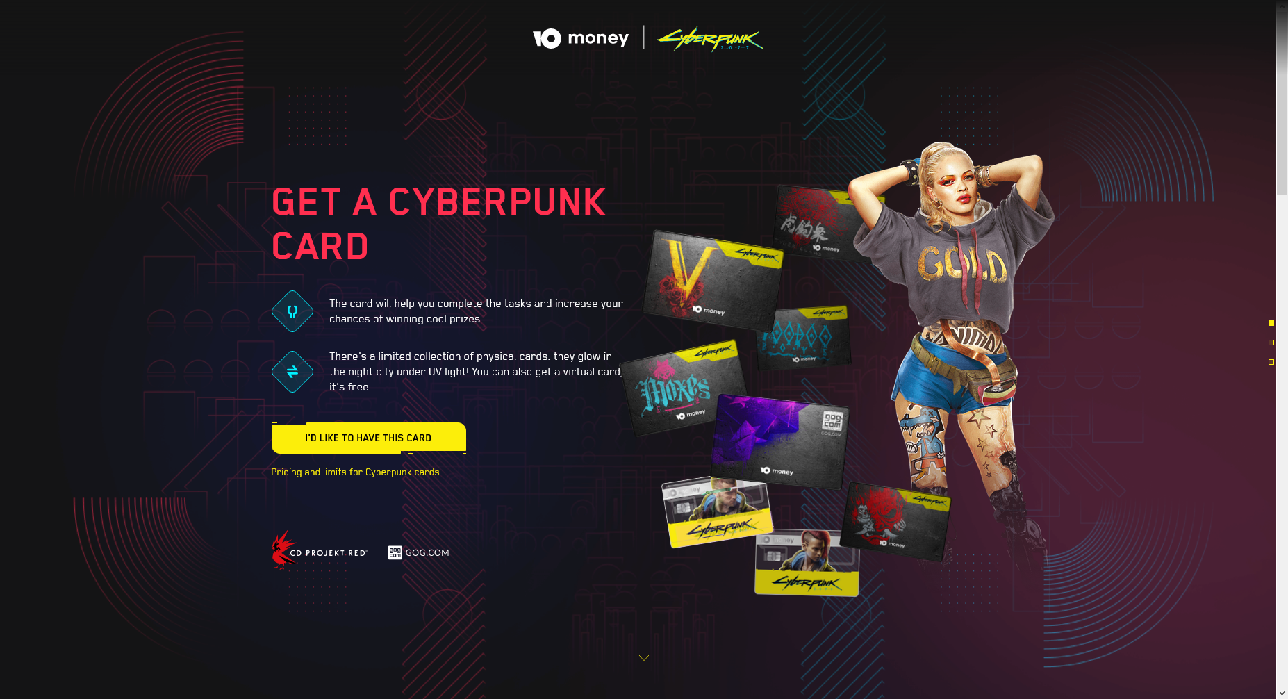 얼마 전에 사이버펑크 2077이 출시가 되면서, 러시아의 YooMoney에서 사이버펑크 디자인 카드를 만들었습니다.