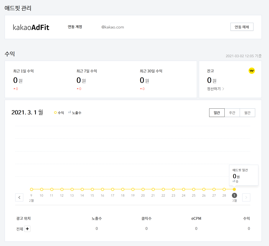 아무튼 애드핏 관리 메뉴에 들어가니 이렇게 뜨네요.