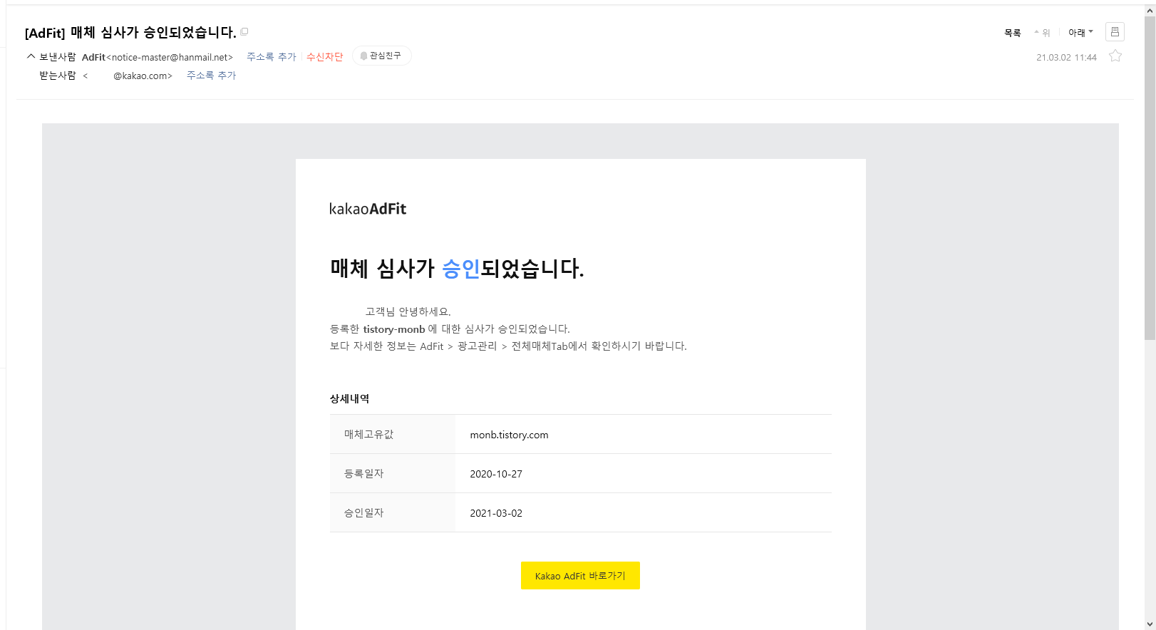 드디어 애드핏에서 승인을 내줬네요.
