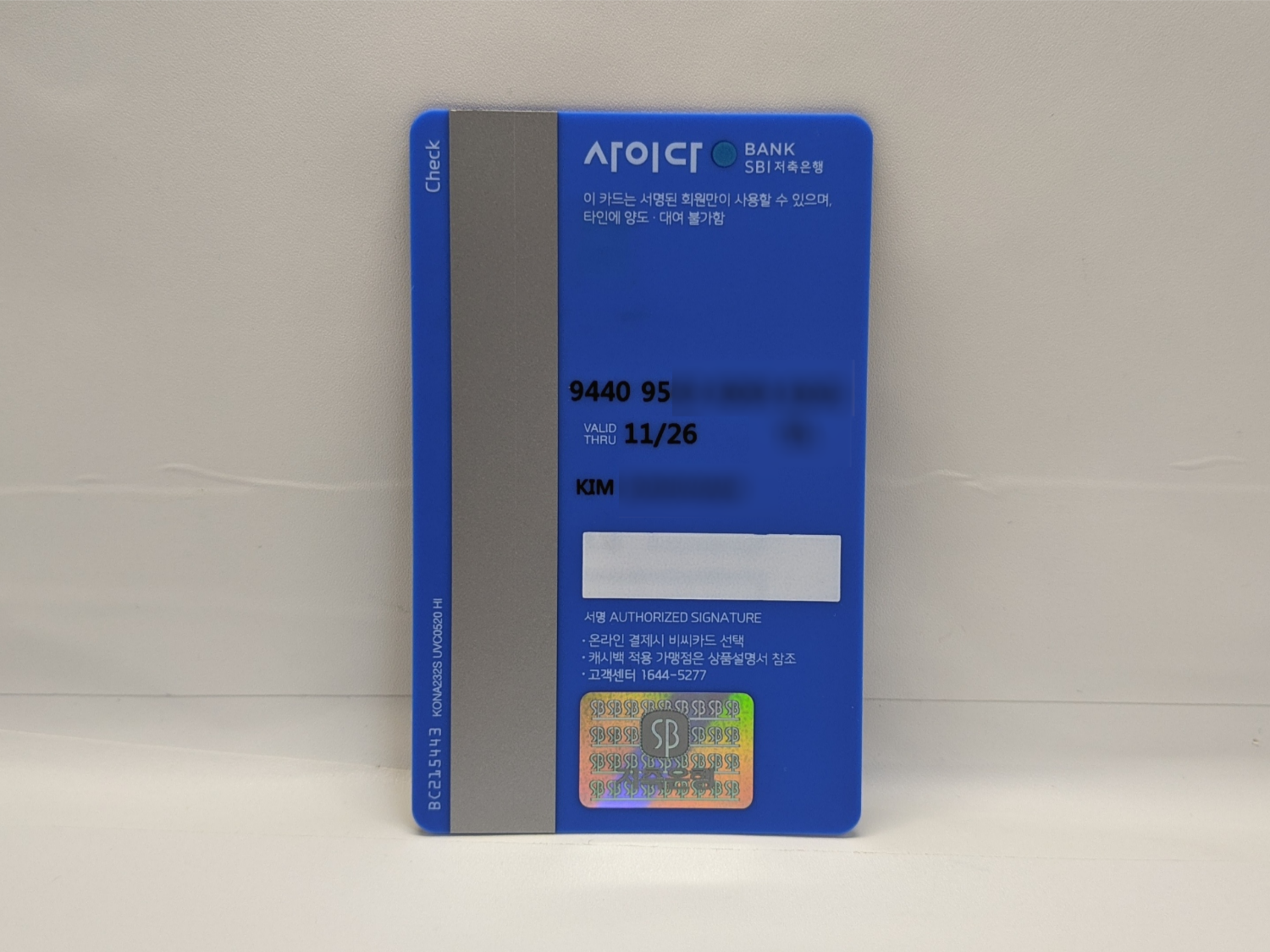 카드는 이렇게 생겼습니다. 무려 저축은행의 홀로그램이 들어가 있네요.